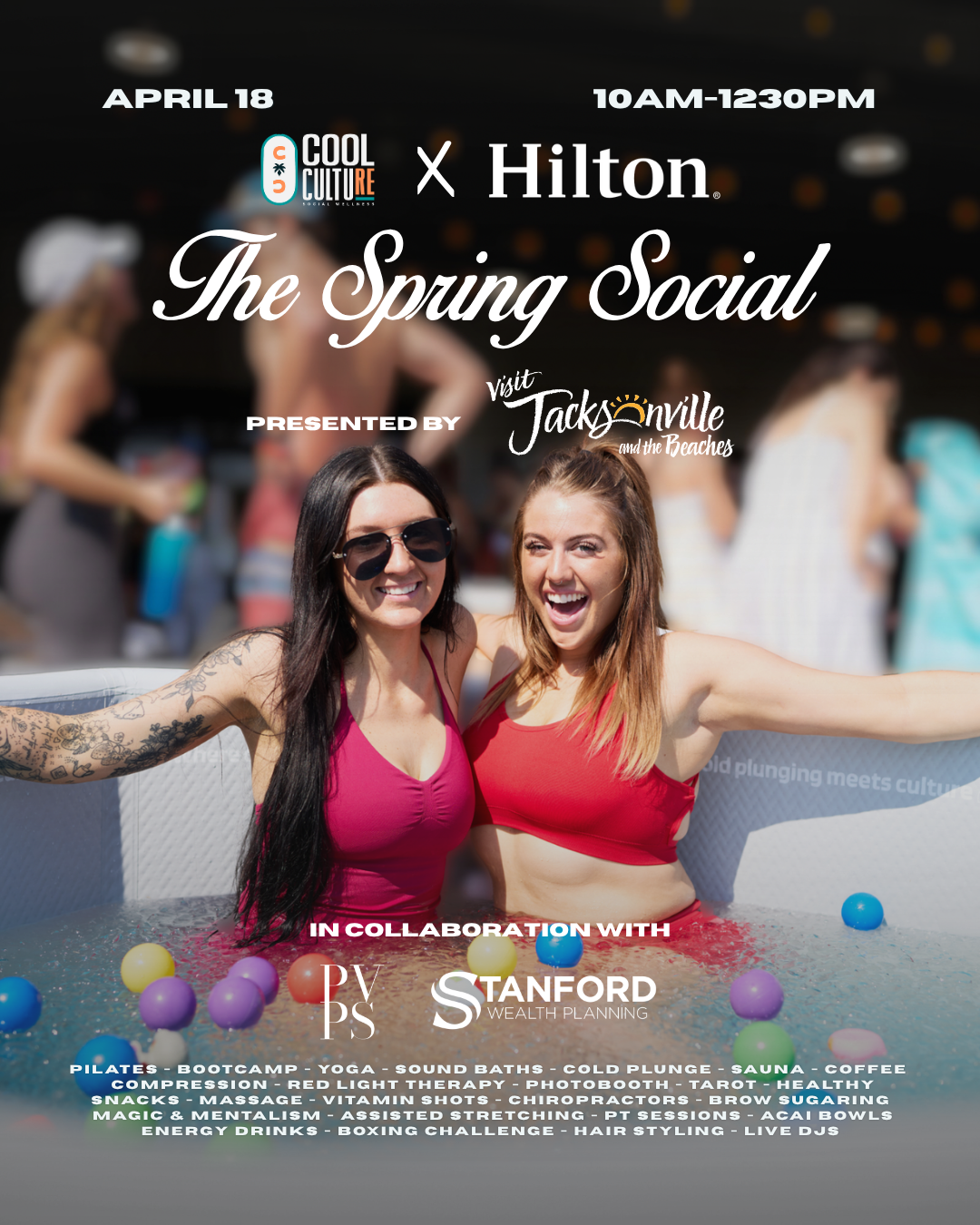 We’re proudly partnering with Visit Jacksonville to bring one of Jacksonville’s biggest wellness experiences to the brand-new Hilton Jacksonville at Mayo Clinic, with support from Ponte Vedra Plastic Surgery and Stanford Wealth Planning. Expect a high-energy morning stacked with local vendors and unique wellness experiences built around movement, recovery, and real connection in a space designed to help you recover, recharge, and reconnect.